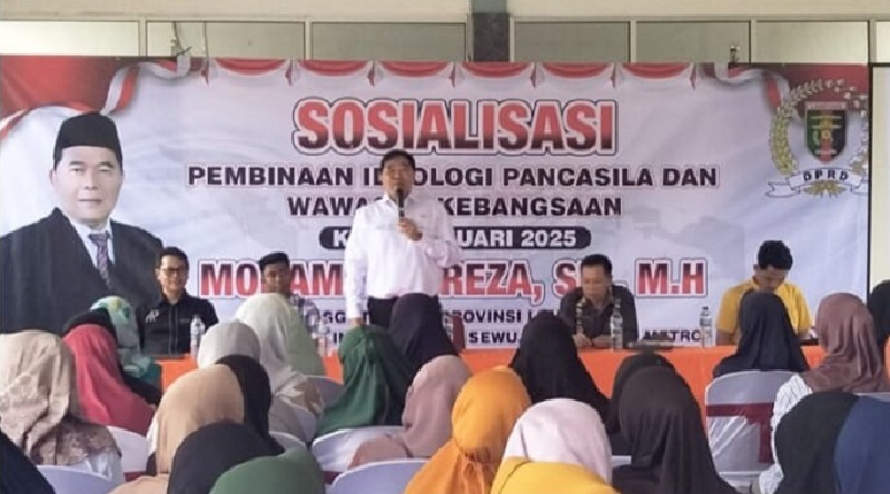 Bandar Lampung – Anggota DPRD Provinsi Lampung Muhammad Reza mengadakan kegiatan sosialisasi Pembinaan Ideologi Pancasila dan Wawasan Kebangsaan (IPWK) di Pekon Sri Rahayu Kecamatan Banyumas, Kabupaten Pringsewu, Kamis (30/1/2025).