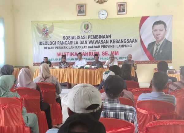 Pesawaran – Sosialisasi Pembinaan Ideologi Pancasila dan Wawasan Kebangsaan (PIP-WK), intens dilakukan oleh anggota DPRD Provinsi Lampung, asal Fraksi Golkar Mustika Bahrum. Dengan tujuan memberikan pendalaman pemahaman tentang Pancasila secara utuh kepada masyarakat, khususnya Warga Desa Paguyuban, Kecamatan Way lima Pesawaran. Sabtu (21/06/2025).