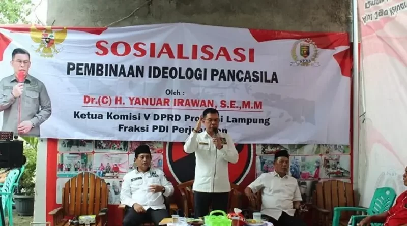 Tanggamus – Ketua Komisi V DPRD Provinsi Lampung Fraksi PDI Perjuangan DR. (C) Hi. Yanuar Irawan S.E, M.M mensosialisasikan Pembinaan Ideologi Pancasila di Pekon Siring Betik Kecamatan Wonosobo Kabupaten Tanggamus, Selasa (31/1/2023).