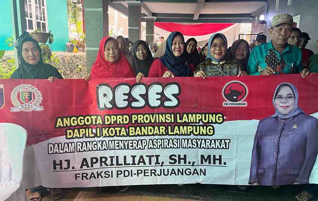 “Saat ini semua anggota DPRD Provinsi Lampung sedang melakukan Reses atau turun langsung menyerap aspirasi masyarakat di dapil nya, oleh karena itu kai semua anggota DPRD provinsi Lampung hadir ditengah tengah masyarakat untuk mengetahui aspirasi apa yang dibutuhkan masyarakat saat ini,” ujar Aprilliati.