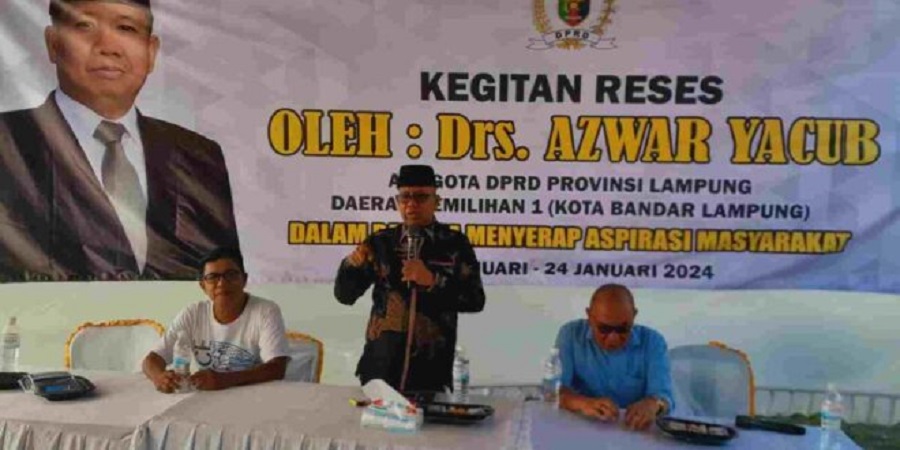 Bandar Lampung – Anggota Komisi IV DPRD Provinsi Lampung dapil 1 Kota Bandar Lampung dari Partai Golkar Drs.H.Azwar Yacub melakukan Reses untuk menyerap aspirasi masyarakat. Sabtu (20/1/2024)