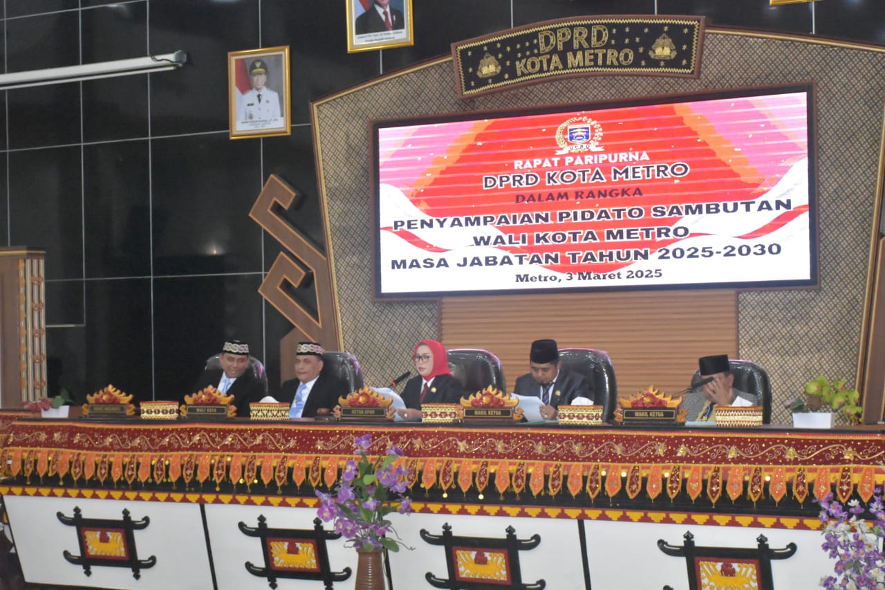 Kota Metro – Wali Kota Metro, H. Bambang Iman Santoso, bersama Wakil Wali Kota Dr. M. Rafieq Adi Pradana secara resmi menyampaikan sembilan program prioritas dalam rapat paripurna di Gedung Dewan Perwakilan Rakyat Daerah (DPRD) Kota setempat, Senin (3/3/2025).