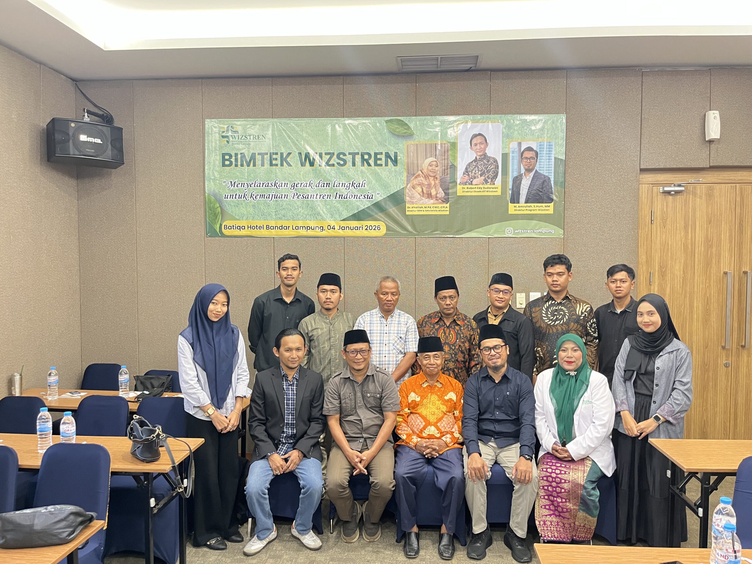 Bandar Lampung, 4 Januari 2026 – Wakaf, Infak, Zakat, dan Sodaqoh Pesantren Indonesia (Wizstren) terus memperkuat fondasi kelembagaan dan arah gerakan ekonomi pesantren. Komitmen tersebut ditegaskan melalui pelaksanaan Bimbingan Teknis (BIMTEK) Dewan Eksekutif Wilayah (DEW) Wizstren Provinsi Lampung, yang digelar pada Minggu (4/1/2026) di Hotel Batiqa, Bandar Lampung.