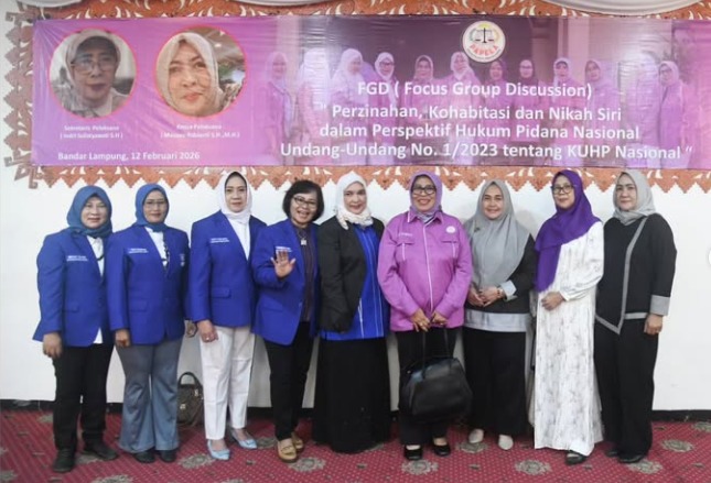 Bandar Lampung – Anggota DPRD Provinsi Lampung dari Fraksi Partai Amanat Nasional (PAN), Diah Dharma Yanti, SH., MH., menegaskan pentingnya penguatan literasi hukum di tengah pemberlakuan Kitab Undang-Undang Hukum Pidana (KUHP) Nasional yang baru. Hal tersebut disampaikannya saat menghadiri Focus Group Discussion (FGD) yang digelar Perkumpulan Advokat Perempuan Lampung di Balai Keratun, Kamis (12/2/2026).