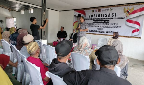Pringsewu – Anggota DPRD Provinsi Lampung, Tondi Muammar Gaddafi Nasution, menggelar Sosialisasi Pembinaan Ideologi Pancasila dan Wawasan Kebangsaan di Pekon Waringin Sari Timur, Kecamatan Adiluwih, Kabupaten Pringsewu, Minggu (15/02/2026).