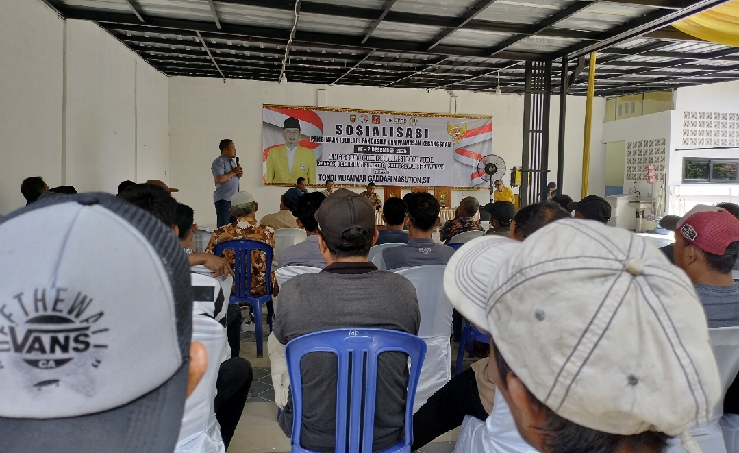 Pringsewu – Komitmen DPRD Provinsi Lampung dalam memperkuat ideologi Pancasila terus digencarkan hingga ke tingkat pekon. Anggota DPRD Provinsi Lampung, Tondi Muammar Gaddafi Nasution, kembali melaksanakan Sosialisasi Pembinaan Ideologi Pancasila dan Wawasan Kebangsaan (PIP) yang digelar di Pekon Sukamulya, Kecamatan Banyumas, Kabupaten Pringsewu, Sabtu (13/12/2025).