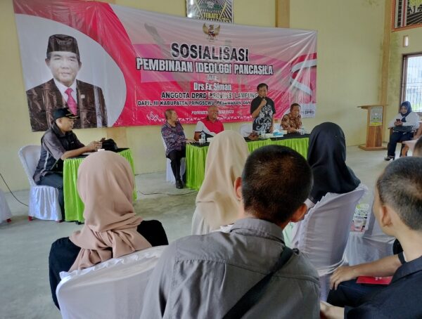“Saya dan kami anggota DPRD Provinsi Lampung menginginkan masyarakat Pringsewu Lampung lebih Pancasilais,” kata Anggota Fraksi Golkar DPRD Provinsi Lampung, FX. Siman, saat menggelar kegiatan Sosialisasi Pembinaan Ideologi Pancasila (PIP), di hadapan masyarakat Pringsewu Selatan, Kabupaten Pringsewu. Sabtu (08/07/2023).