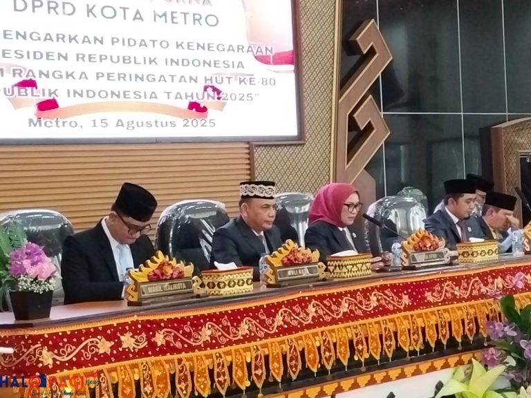Metro – DPRD Kota Metro bersama Pemerintah Daerah Kota Metro menggelar Rapat Paripurna di Gedung Paripurna DPRD Kota Metro, Jumat (15/8), untuk mengikuti Sidang Tahunan MPR RI secara daring. Kegiatan ini menjadi rangkaian peringatan HUT ke-80 Kemerdekaan Republik Indonesia.