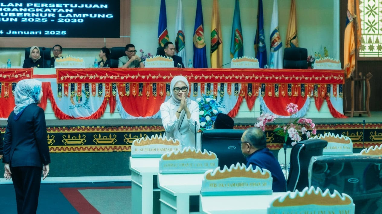 Rapat Paripurna yang dipimpin oleh Ketua DPRD Provinsi Lampung, Ahmad Giri Akbar, ini mengusulkan persetujuan pengesahan pengangkatan pasangan Rahmat Mirzani Djausal dan dr. Jihan Nurlela sebagai Gubernur dan Wakil Gubernur Lampung untuk masa jabatan 2025-2030.
