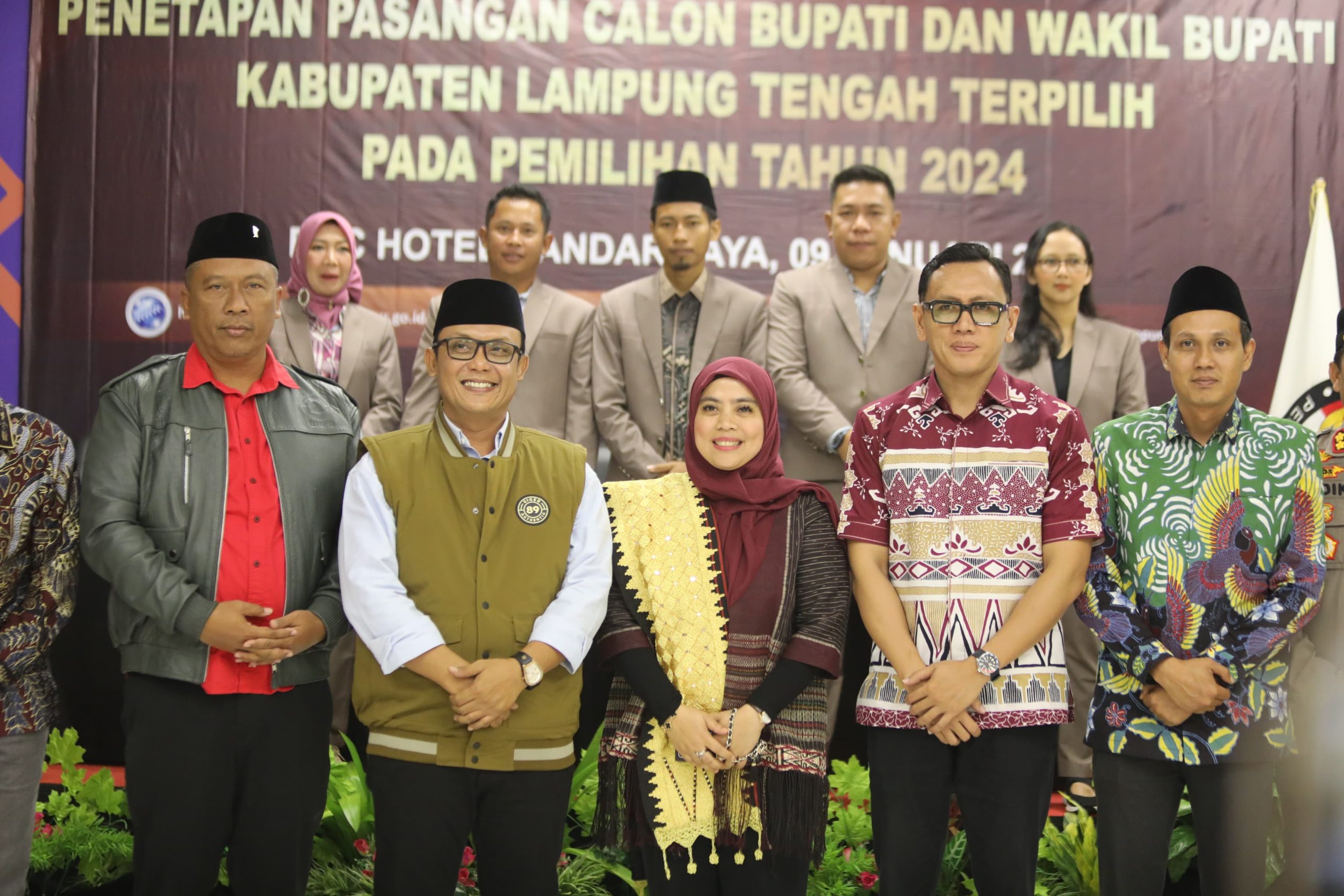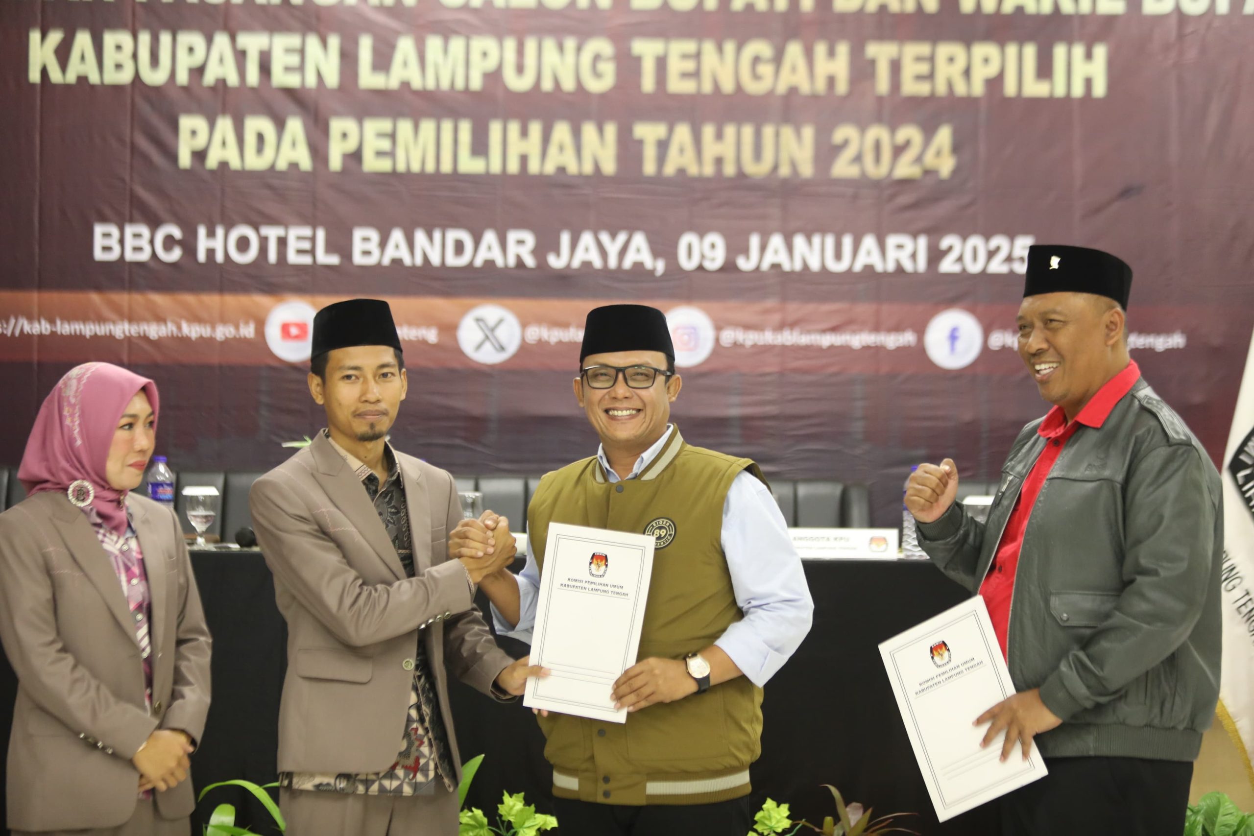 Penetapan dilaksanakan dalam rapat pleno terbuka penetapan pasangan calon Bupati dan Wakil Bupati Kabupaten Lampung Tengah Terpilih yang digelar di Hotel BBC Bandarjaya, Lampung Tengah, Kamis (9/1/2025).