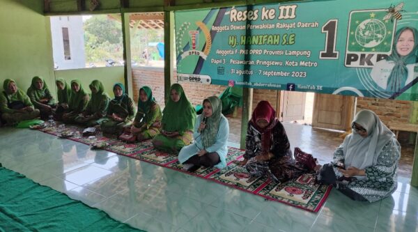 Pesawaran – Sejumlah aspirasi disampaikan warga, dan keluarga Muslimat NU se-Kecamatan Negerikaton Kabupaten Pesawaran. Diantaranya, pembinaan UMKM, KWT, dan Subsidi anggaran PAC Muslimat NU Negerikaton. Hal tersebut diungkapkan, saat reses tahap III tahun 2023 anggota DPRD Provinsi Lampung periode 2019-2024.