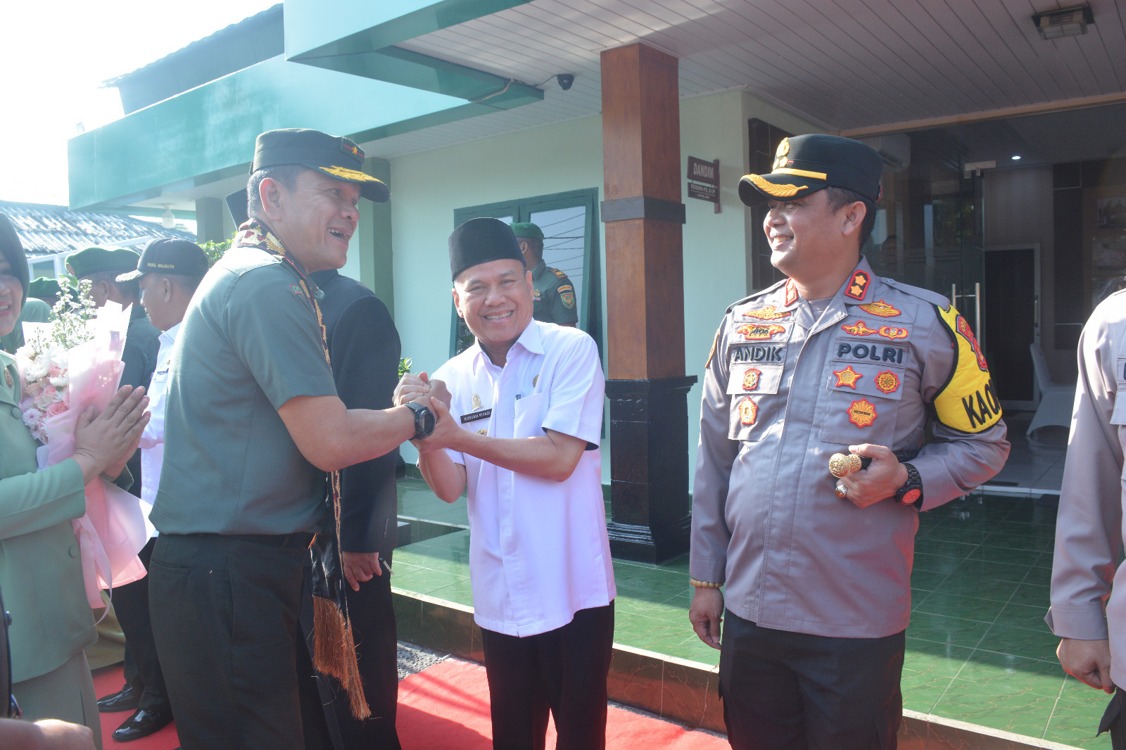 Lampung Tengah – Sekdakab Lampung Tengah, Drs.Kusuma Riyadi.M.M. Mewakili Bupati Lampung Tengah, Musa Ahmad.S.Sos.M.M bersama Forkopimda menyambut kunjungan kerja Danrem 043/ Garuda Hitam, Brigjen TNI Rikas Hidayatullah di Markas Kodim 0411 Kota Metro (Kamis, 25/7/2024).
