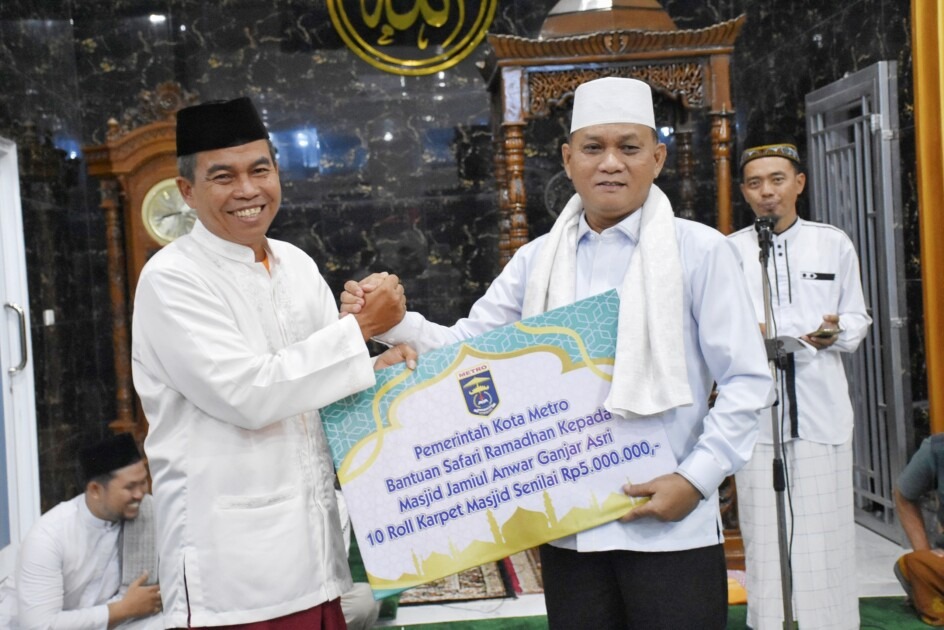 Dalam kegiatan Safari Ramadan tersebut, Pemkot Metro turut menyalurkan bantuan berupa 10 Roll Karpet Masjid senilai 5 Juta yang diserahkan secara simbolis oleh Wakil WaliKota Metro dan diterima oleh pengurus masjid. (Red/Adv)