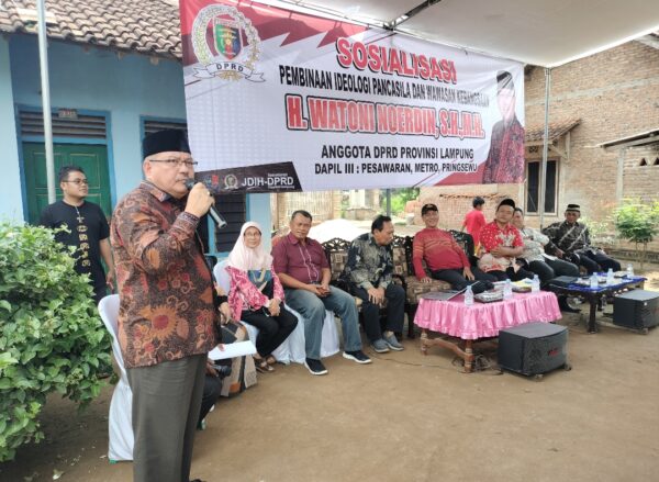 Pringsewu – Di 14 Februari 2024, kita akan menghadapi pesta demokrasi secara serentak, untuk memilih wakil rakyat dan pemimpin bangsa. Disini, menjadi pembuktian bahwa Nilai-nilai Pancasila itu wajib diterapkan. Jangan karena beda pilihan, terjadi perselisihan antar keluarga, tetangga dan lingkungan’, demikian disampaikan Anggota DPRD Provinsi Lampung, Watoni Noerdin, di hadapan warga Pekon Jati Agung, Kecamatan Ambarawa Kabupaten Pringsewu. Minggu (04/02/2024).